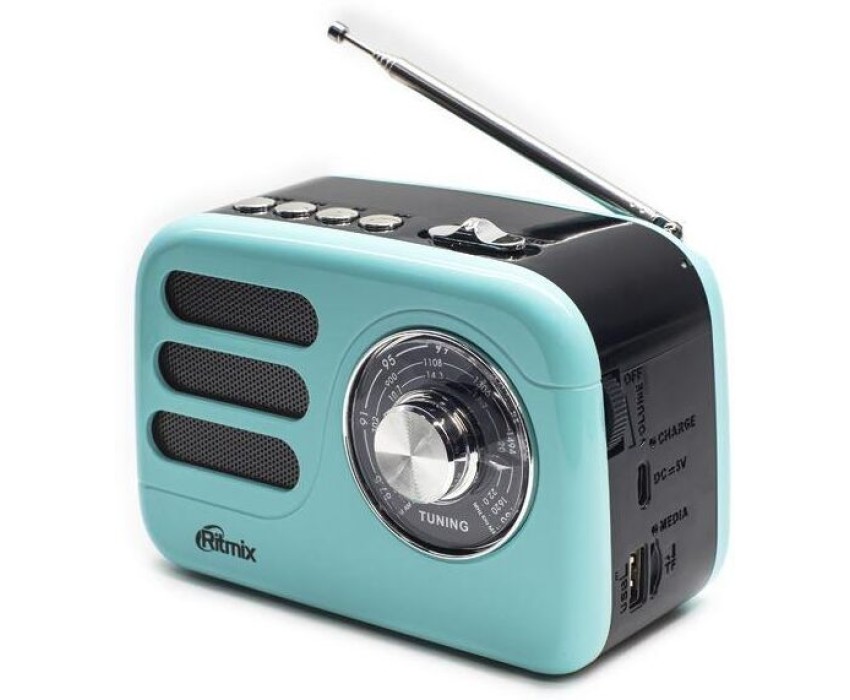 Радиоприёмник портативный трехдиапазонный FM/AM/SW, Bluetooth v.5.3, воспроизведение с USB и с карт памяти micro SD (до 32Gb), аналоговый тюнер, динамик 52мм 5 Вт 4 Ом, ручка настройки частоты и громкости, телескопическая антенна, питание (DC) Type C 5В 1A 3,5 Watt (Type-C - USB кабель 80cm в комплекте), 140*70*95 мм