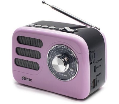 Радиоприёмник портативный трехдиапазонный FM/AM/SW, Bluetooth v.5.3, воспроизведение с USB и с карт памяти micro SD (до 32Gb), аналоговый тюнер, динамик 52мм 5 Вт 4 Ом, ручка настройки частоты и громкости, телескопическая антенна, питание (DC) Type C 5В 1A 3,5 Watt (Type-C - USB кабель 80cm в комплекте), 140*70*95 мм