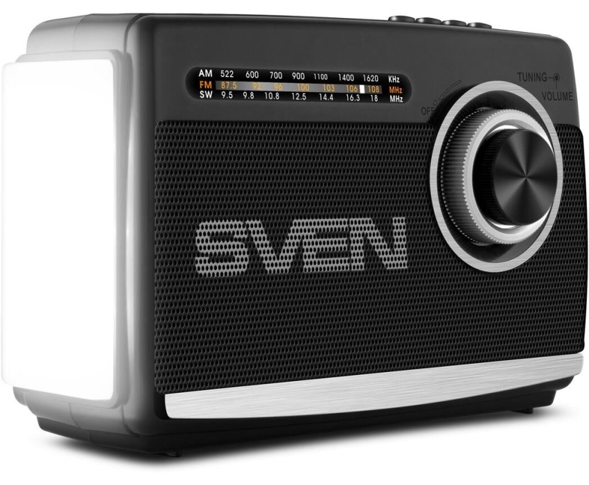 Передача сигнала по Bluetooth Встроенный литий-ионный аккумулятор (1200мАч) Воспроизведение музыки с USB flash и microSD карт памяти Прием радиосигнала в диапазоне вещания FM, AM, SW Разъем для подключения наушников Встроенный фонарь Телескопическая поворотная антенна Выходная мощность (RMS), Вт 3 Режим воспроизведения моно Частотный диапазон, Гц 150 – 20 000 Размеры динамиков, мм Ø 76 Воспроизведение музыки с носителей памяти USB, microSD Поддерживаемые аудиоформаты MP3 Источник питания литий-ионный aккумулятор: 1200мА·ч USB: DC 5 V Номинальный ток потребления, А 0,07 Длина шнура питания, м 0,8