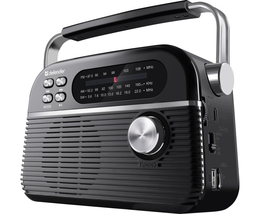 Портативный беспроводной FM/AM/SW радиоприемник с Bluetooth 5.3 и поддержкой флеш накопителей и карт памяти microSD.