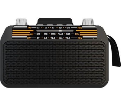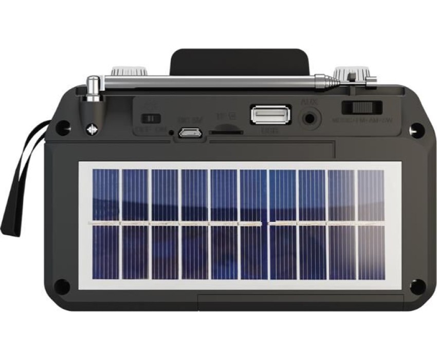 Диапазоны частот: FM/AM/SW Bluetooth 5.3 Поддержка аудионосителей: USB/microSD Аудиовход AUX-in Выходная мощность: 5 Вт Воспроизведение форматов MP3, WAV, WMA, FLAC, APE Батарея: 1200 мАч Солнечная батарея Фонарик Телескопическая поворотная антенна Разъём 5 B для зарядки (microUSB)