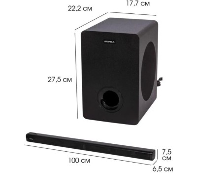 Совместимость с форматами: MP3/WMA/FLAC/WAV. Разделяемый центральный канал. Саундбар с проводным сабвуфером. Эквалайзер. Bluetooth. HDMI. Оптический вход. Полнофункциональный пульт ДУ. USB пор. Линейный вход. Максимальная выходная мощность: 200 Вт + Сабвуфер 400 Вт. Выходная мощность RMS: 30 Вт + Сабвуфер 50 Вт. Питание: DC 16.8 В, 3 А.