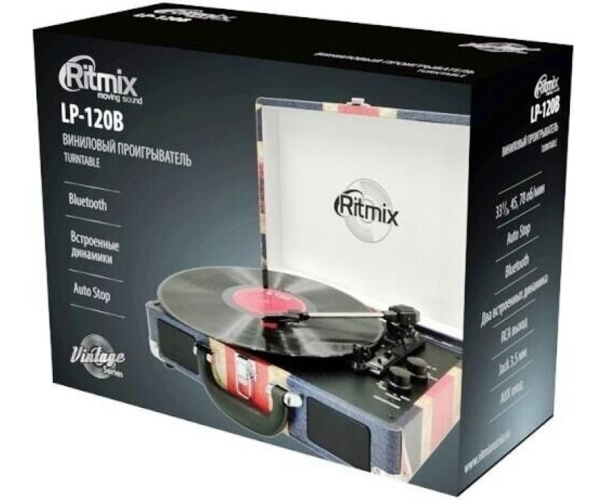 Виниловый проигрыватель, Bluetooth 4.1, номинальная потребляемая мощность 6 Вт, скорости воспроизведения пластинок33?, 45, 78 об/мин,тонарм - поворотный прямой, Auto Stop, размеры353 х 257 х 102 мм.