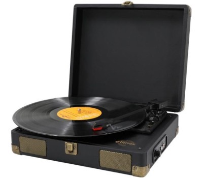 Виниловый проигрыватель. 3 скорости; 33 1/3,45, 78 об в мин c фунцией Автостопа; два встроенных динамика, Jack 3.5 мм для наушников, RCA выход, тонарм: ручной, переключатели: громкости, Питание: Type-C, DC 5В В комплекте дополнительно: USB зарядный кабель, мануал, гар. талон