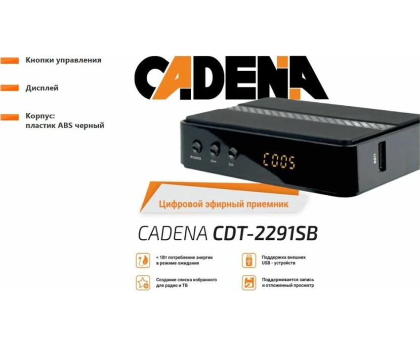 Приставка для цифрового ТВ Cadena CDT-2291SB черный, DVB-T2, DVB-T, HDMI, USB 2.0 <046/91/00055106>