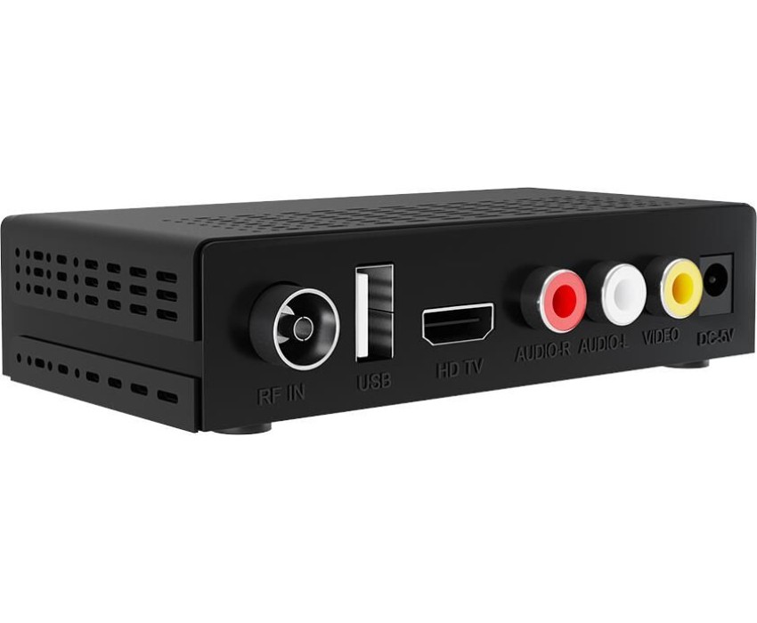 Декодируемый сигнал DVB-T2/T and DVB-C (прием открытых каналов) Разрешение видео: 720p, 1080i, 1080p (Full HD) Поддержка форматов: AVI, MKV, MOV, TS, VOB, MP4, MPEG, DAT, JPEG, BMP, SRT, SUB, JPG Поддержка видео кодеков: MPEG2, MPEG4, H.264, SD, HD, MP, HP L4.1 Поддержка аудио кодеков: MPEG1, MPEG2, PCM, 32/44.1/48KHz USB 2.0 (носители до 1TB) Поддержка файловых систем FAT/FAT32/NTFS Функции: запись (PVR), Time Shift (сдвиг по времени), телегид EPG, TeleText, Subtitle, Fav Group, NIT Таймер записи в назначенное время Экранное меню на русском и английском языках Разъемы: антенный вход, видео (RCA), L/R аудио (RCA), HDTV, 2хUSB, DC IN ПДУ Wi-Fi-адаптер LED дисплей с белой подсветкой Питание: от сети через адаптер 5 В, 2 А Цвет: черный