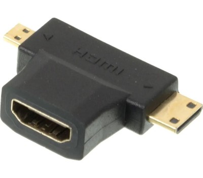 Тип: Переходник. Функциональный тип: аудио-видео. Цвет: черный. Разъем №3: Mini HDMI (m). Габариты упаковки (ед) ДхШхВ: 0.03x0.02x0.01. Вес упаковки (ед): 0.01. Гарантия: 6 мес.. Разъем 1: HDMI (f). Разъем 2: Micro HDMI (m). Разъемы: HDMI (f) - Micro HDMI (m); Mini HDMI (m)