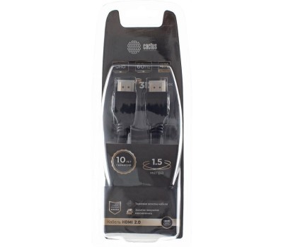 кабель CACTUS Кабель аудио-видео CS-HDMI.2-1.5 HDMI (m)/HDMI (m) 1.5м. позолоч.конт. черный