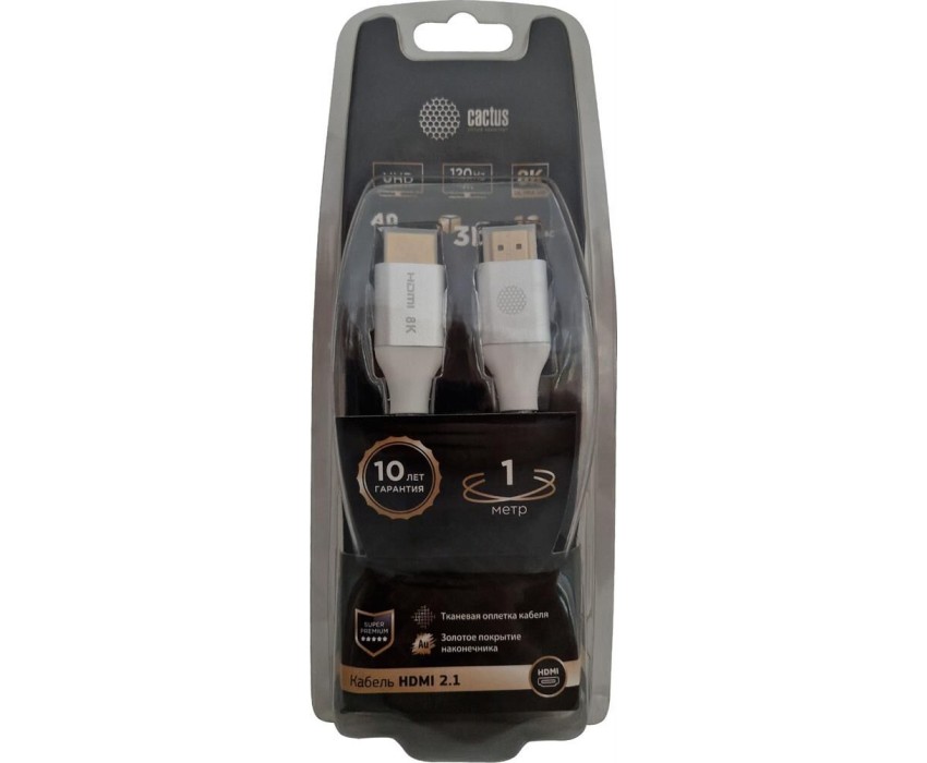 кабель CACTUS Кабель аудио-видео CS-HDMI.2.1-1 HDMI (m)/HDMI (m) 1м. позолоч.конт. серебристый