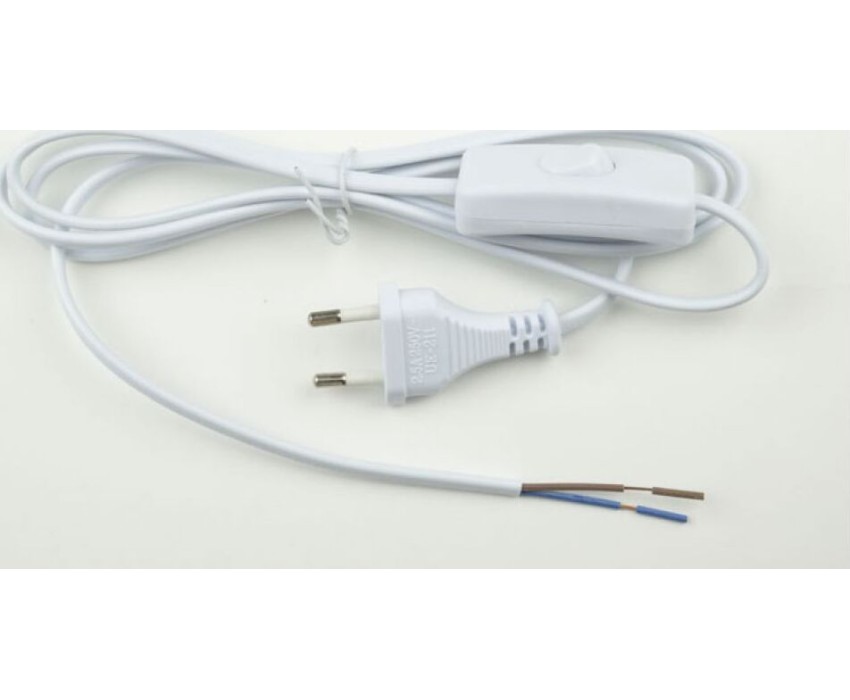Сетевой шнур с вилкой и выключателем. 2А, 500Вт, 1,7м. Белый. (новинка) ; Длина кабеля, м - 1,7; Заземление - Нет; Максимальная нагрузка, Вт - 500; Минимальная партия - 1; Наличие выключателя - Да; Номинальная сила тока, А - 2; Сечение провода, мм2 - 0,5; Срок гарантии, мес. - 12 месяцев; Срок годности - не ограничен; Цвет корпуса (изделия) - белый
