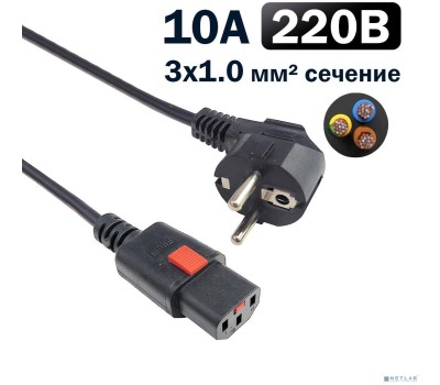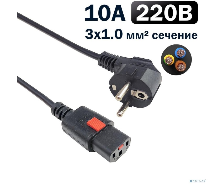 FILUM Кабель питания FL-PC-CEE7/7-C13F-C1-0.5-BK 3x1.0 CEE 7/7(Schuko) - C13 с фиксацией, 220/250В, 10А, черный, 0.5м (1111331)
