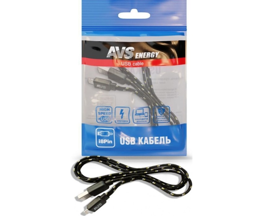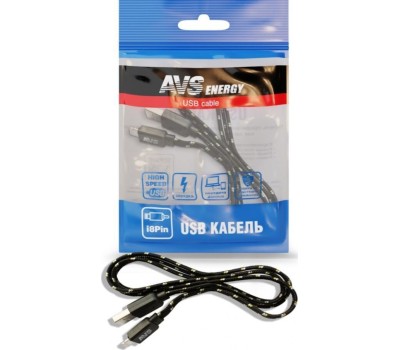 Кабель AVS IP-521 для iphone 5 (1м) (плоский текстиль)