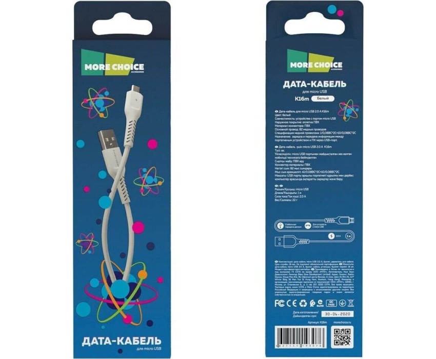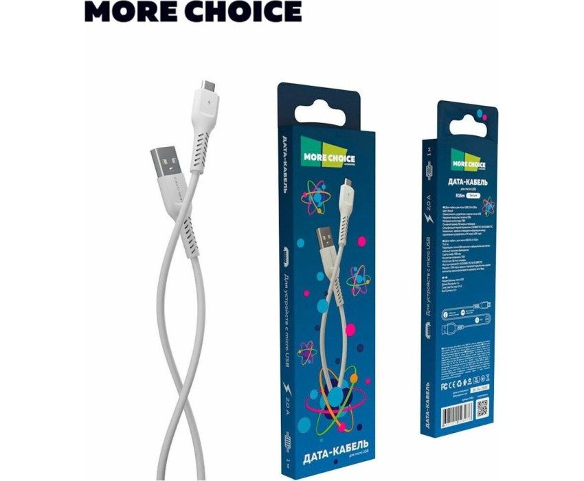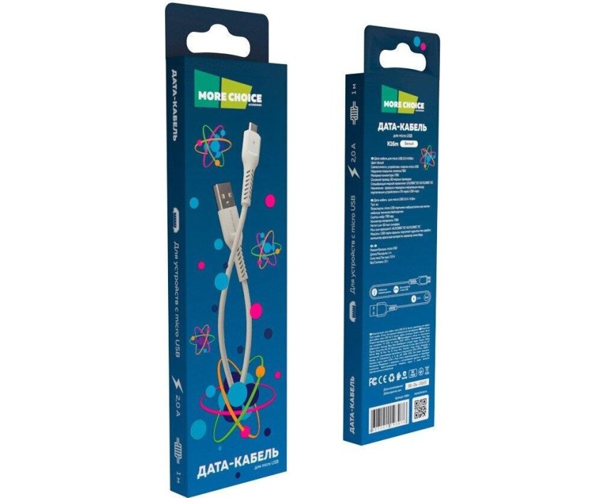 Кабель MORE CHOICE (4627151193076) K16m USB (m)-microUSB (m) 1.0м - белый
