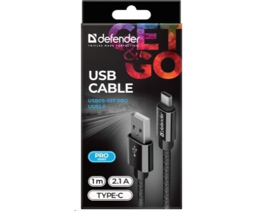 USB кабель DEFENDER (87814) USB09-03T PRO USB2.0, AM-TYPE-C, 1.0 м, черный