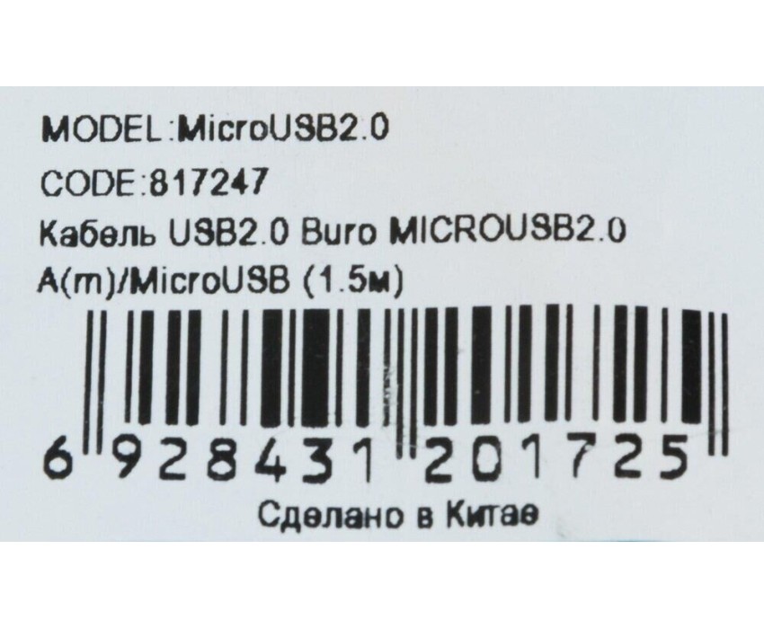 BURO Кабель MICROUSB2.0 USB (m)-micro (m) 1.5м черный