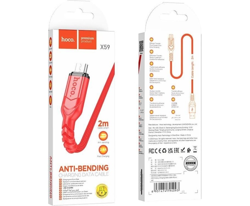 Кабель HOCO (6931474794093) X59m USB 2.4A microUSB 2м красный