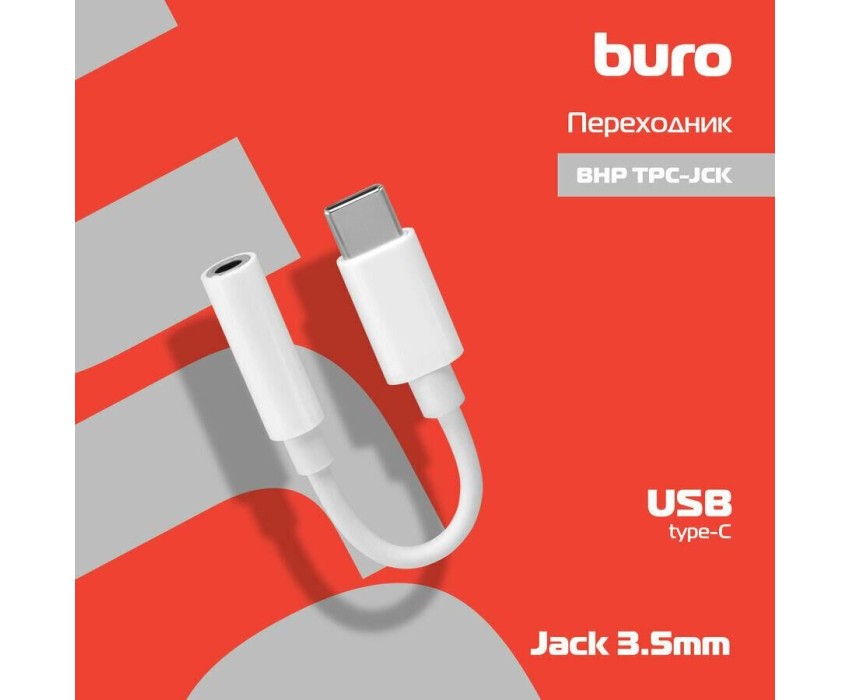 BURO Переходник BHP TPC-JCK Jack 3.5 (f)-USB Type-C (m) белый