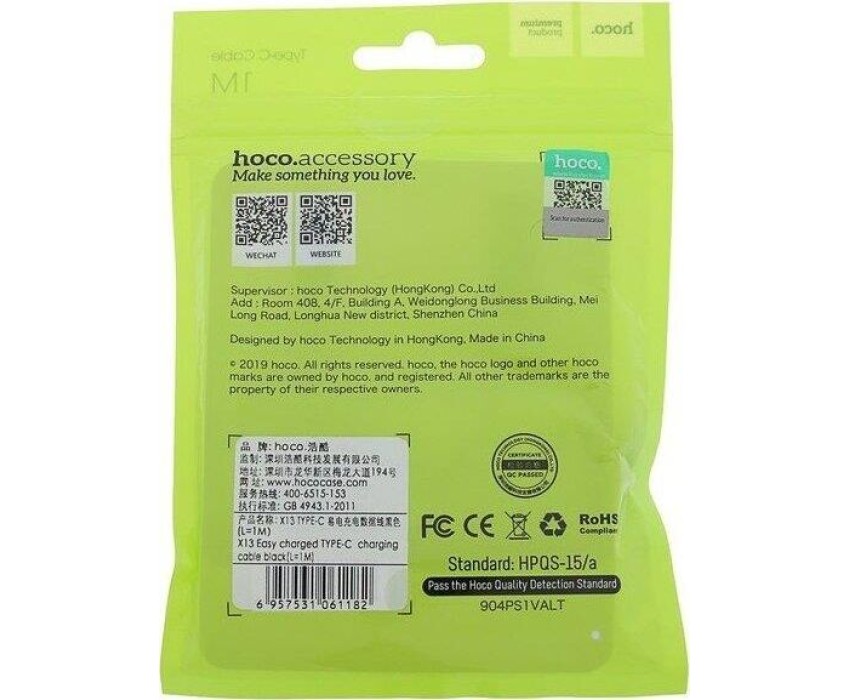 Дата-кабель Type-C HOCO (6957531061182) X13 USB (m)-Type-C (m) 1.0м - черный