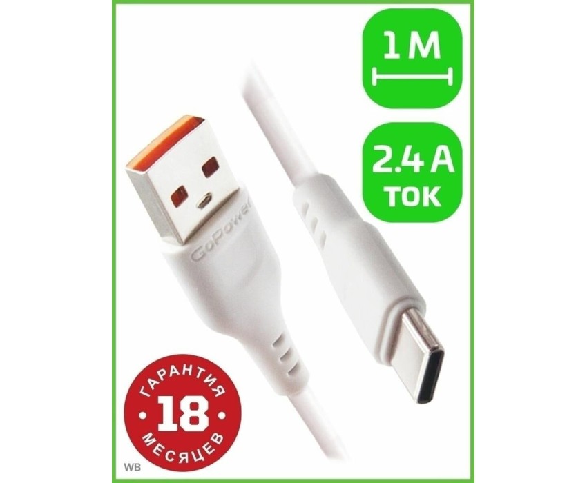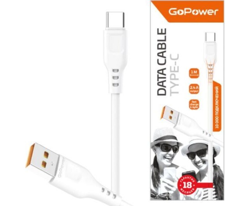 кабель GOPOWER (00-00018565) Кабель GP01T USB (m)-Type-C (m) 1.0м 2.4A белый