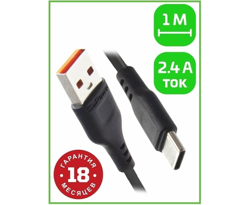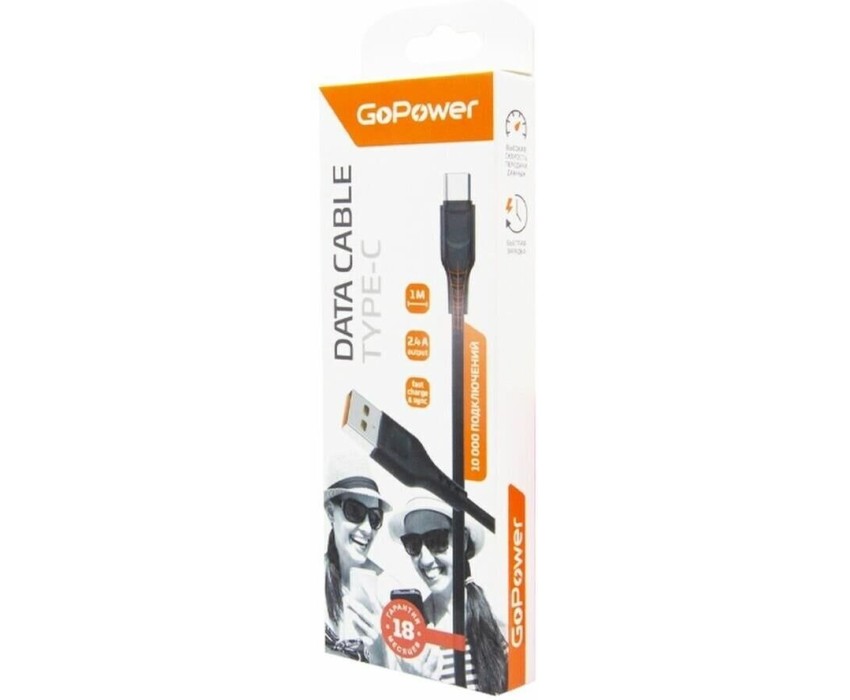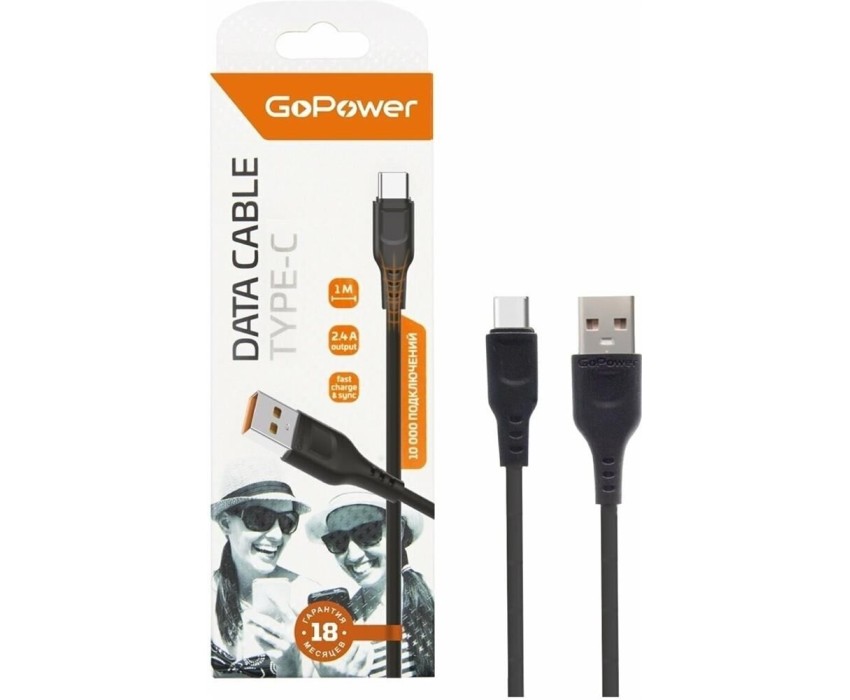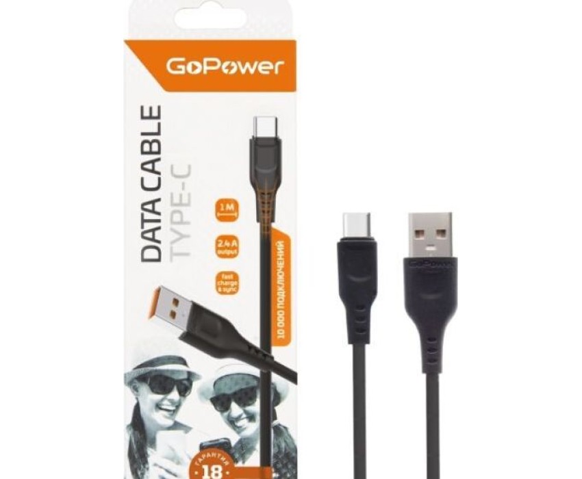 кабель GOPOWER (00-00018566) Кабель GP01T USB (m)-Type-C (m) 1.0м 2.4A черный