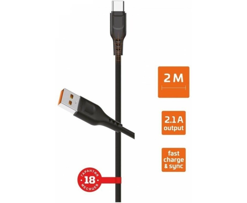 "Тип: Type-C Длина: 1 м Поверхность разъема: ПВХ, двухстороннее литье под давлением Разъем: два концевых медных штифта с позолотой, 24-часовой тест солевым туманом Максимальный ток: 2,4 А "