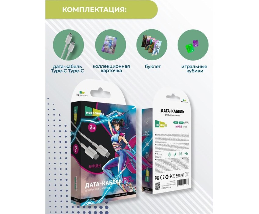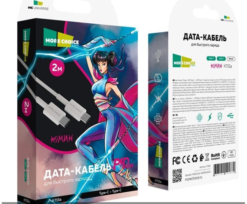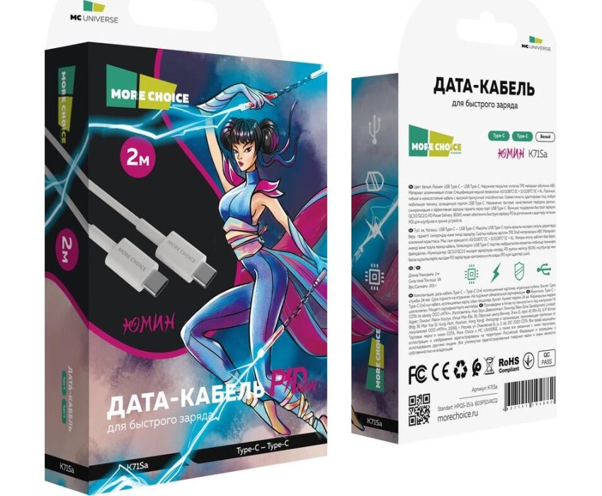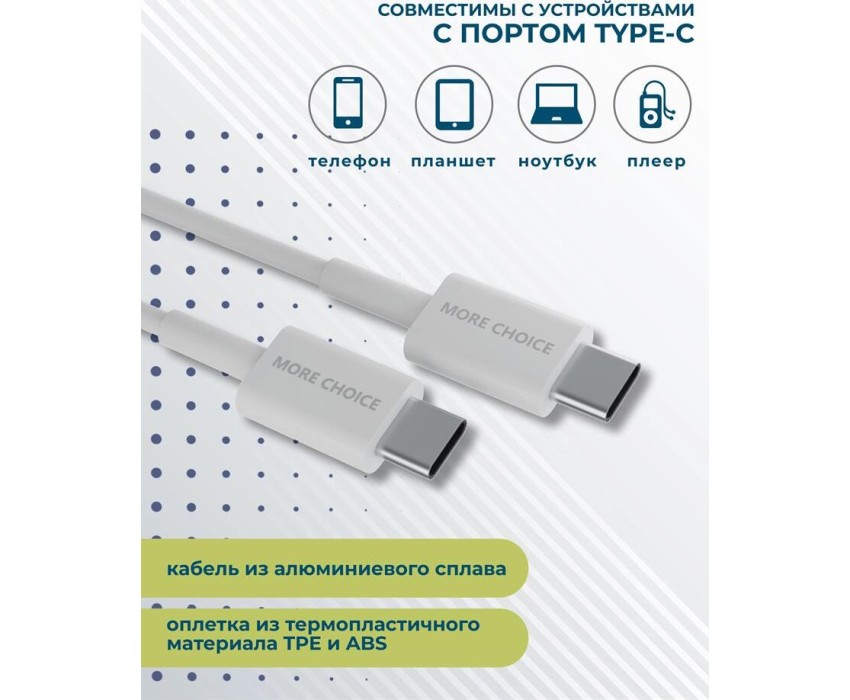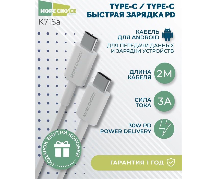 Кабель MORE CHOICE (4627151194882) K71Sa USB (m)-Type-C (m) 3.0А 2.0м - белый