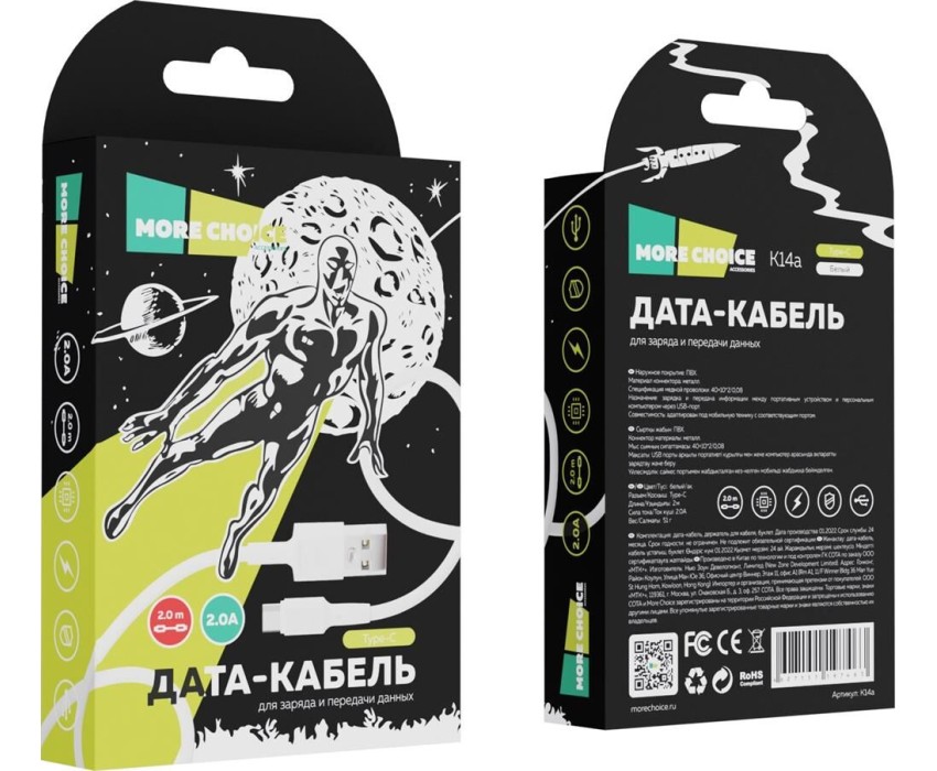 Кабель MORE CHOICE (4627151197463) K14a USB (m)-Type-C (m) 2.0м белый