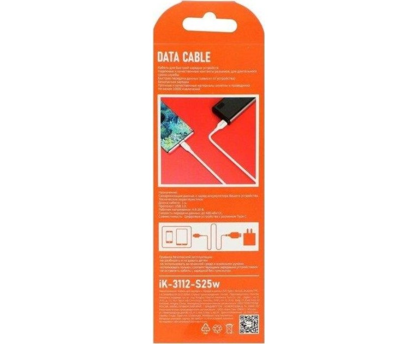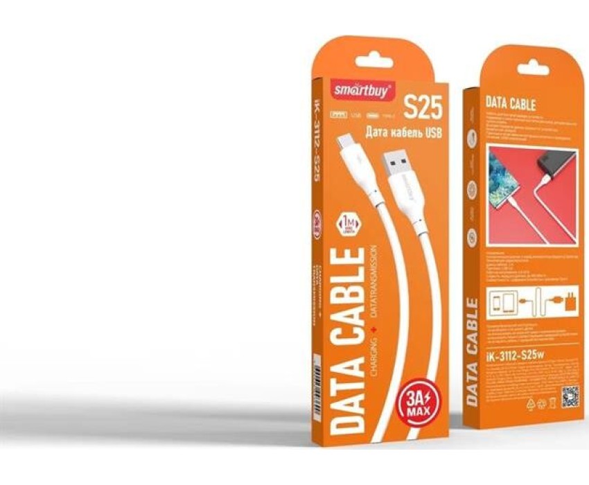 Кабель SMARTBUY (iK-3112-S25w) S25 Type C белый, 3А,soarer,TPE, 1 м