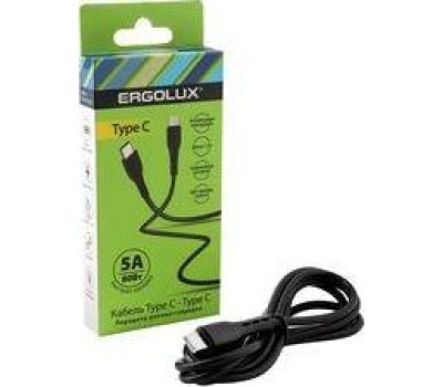 Кабель ERGOLUX (15201) ELX-CDC06-C02 (Кабель Type C-Type C, 5А, 80Вт, 1,2м, Черный, Зарядка+ПД, Коробка)
