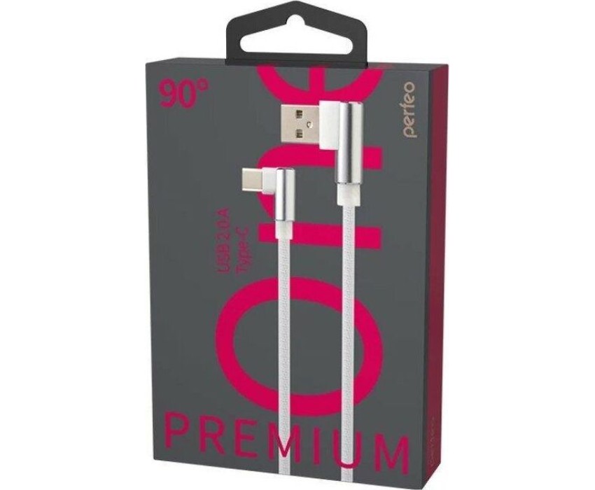 Кабель PERFEO (U4905) USB A вилка - Type-C вилка, 2.4A, угловой, белый, длина 1 м., Type-C Premium