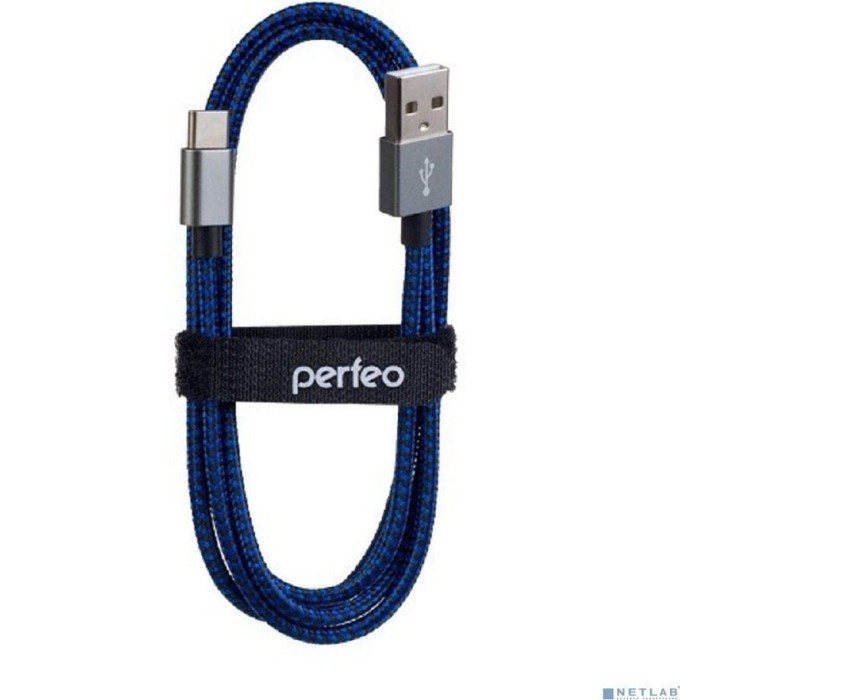 PERFEO (U4903) Кабель USB2.0 A вилка - USB Type-C вилка, черно-синий, длина 1 м