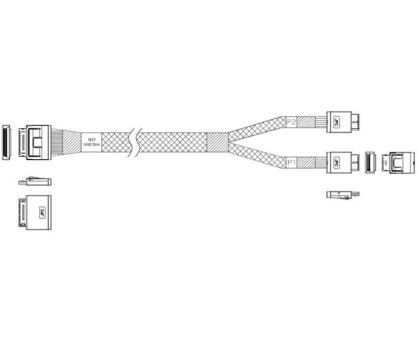 JPC Кабель P5251DR01000-1 Cable OCuLink x8 80P (прямой Straight Type) -TO- 2x OCuLink x4 42P (прямой Straight Type) , 85 Ohm, L:100cm