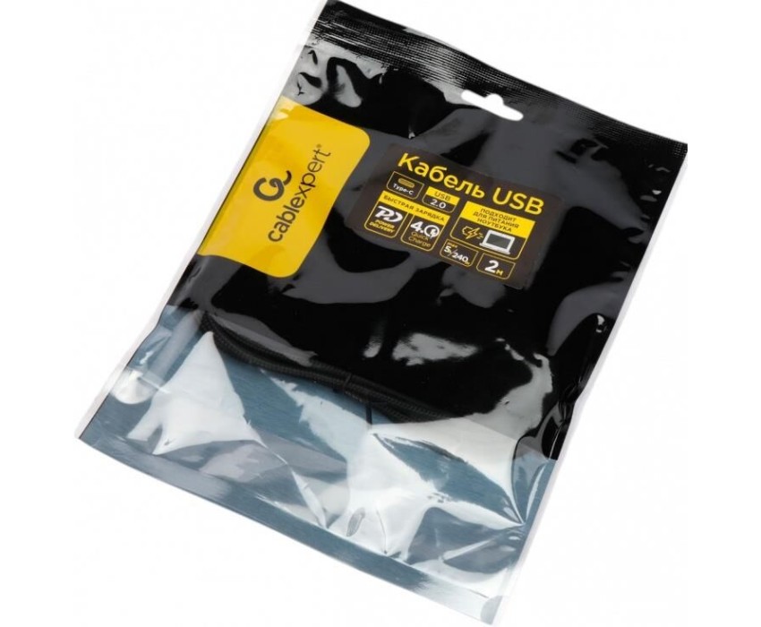 Cablexpert Кабель USB2.0 Type-C/Type-C, 5А, 240Вт, PD3.1/QC4.0, медь, 2м, черный, пакет (CC-USB2.0-240W-2M)