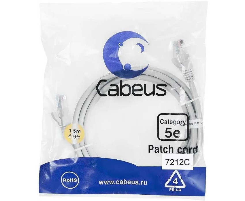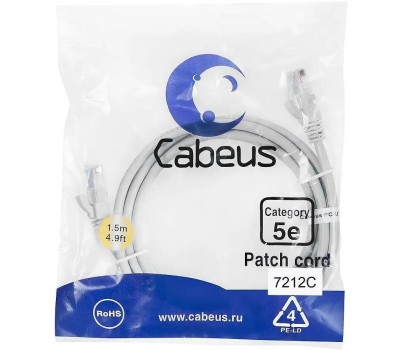 CABEUS Патч-корд PC-UTP-RJ45-CAT.5E-1.5M U/UTP RJ-45 вил.-вилка RJ-45 кат.5E 1.5м серый ПВХ