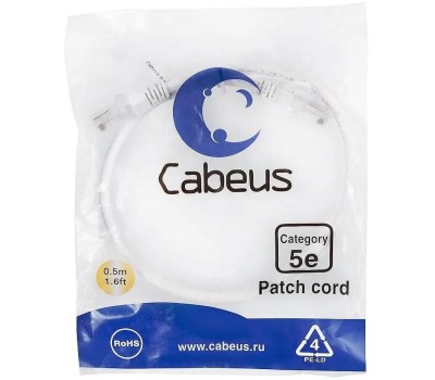 CABEUS Патч-корд PC-UTP-RJ45-Cat.5e-0.5m-WH-LSZH U/UTP RJ-45 вил.-вилка RJ-45 кат.5E 0.5м белый LSZH