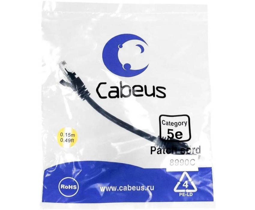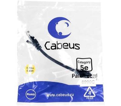 CABEUS Патч-корд PC-UTP-RJ45-CAT.5E-0.15M-BK U/UTP RJ-45 вил.-вилка RJ-45 кат.5E 0.15м черный ПВХ