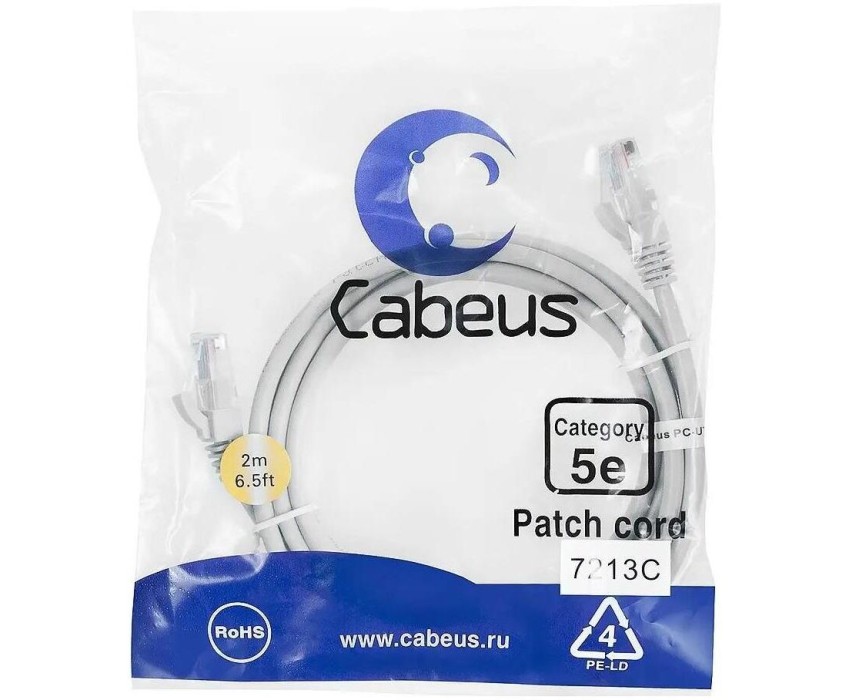 CABEUS Патч-корд PC-UTP-RJ45-CAT.5E-2M U/UTP RJ-45 вил.-вилка RJ-45 кат.5E 2м серый ПВХ