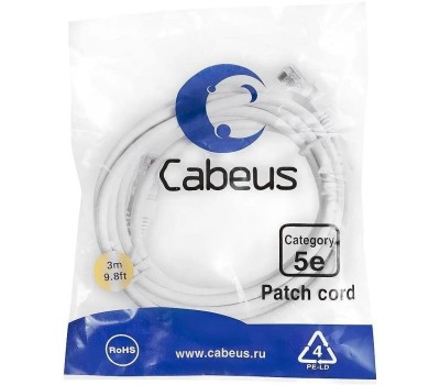 CABEUS Патч-корд PC-UTP-RJ45-CAT.5E-3M-WH-LSZH U/UTP RJ-45 вил.-вилка RJ-45 кат.5E 3м белый LSZH