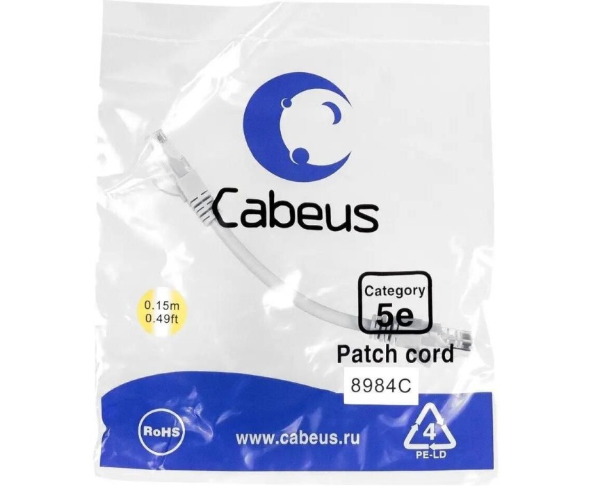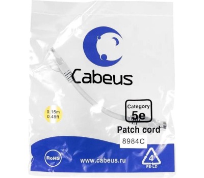 CABEUS Патч-корд PC-UTP-RJ45-CAT.5E-0.15M-LSZH U/UTP RJ-45 вил.-вилка RJ-45 кат.5E 0.15м серый LSZH