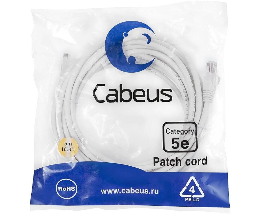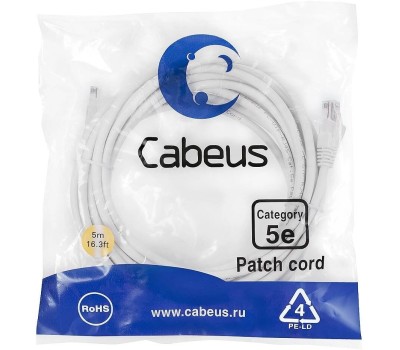 CABEUS Патч-корд PC-UTP-RJ45-Cat.5e-5m-WH U/UTP RJ-45 вил.-вилка RJ-45 кат.5E 5м белый ПВХ