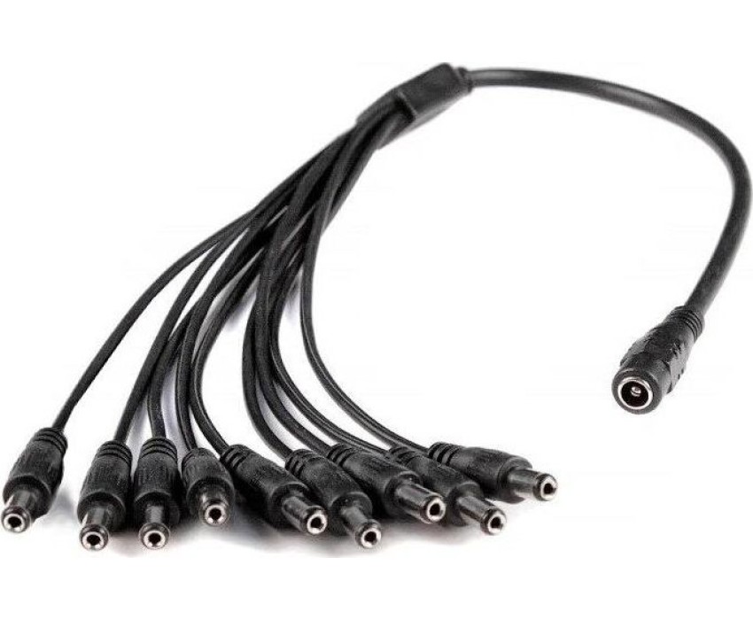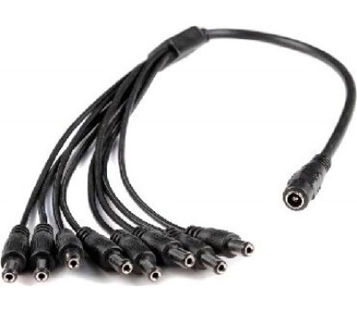 Идеально подойдет, когда нужно подключить к одному разъему питания 2,1*5,5 несколько камер видеонаблюдения. Просто подключите адаптер к вашему разъему питания, а к выходу адаптера вы можете подключить от 1 до 9 камер. длинна провода адаптера 46 см.