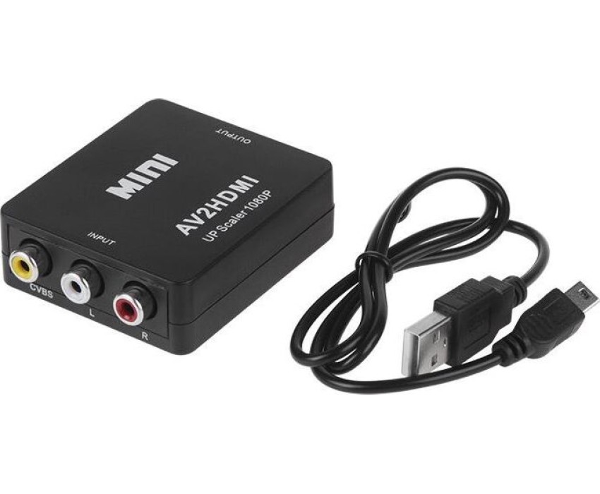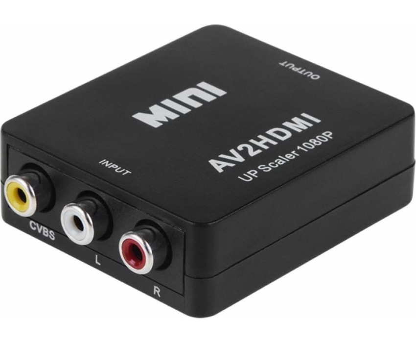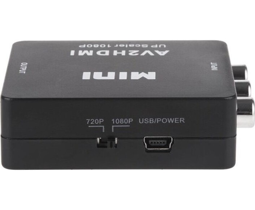 Активный конвертер 3 RCA на HDMI предназначен для перекодирования видео- и аудиосигналов разъемов типа RCA (тюльпаны, колокольчики) в видео- и аудиосигнал разъема HDMI с функцией масштабирования. Конвертер прост в установке и удобен в использовании. Изделие подключается к сети при помощи USB (поставляется в комплекте с изделием), имеет переключатель характеристик выходного сигнала: 720p60Hz или 1080p60Hz. Основные характеристики. Модель: MINI AV to HDMI; Входной интерфейс: CVBS L/R (RCA); Выходной интерфейс: HDMI; Источник питания: через USB кабель; Передача звука: есть (стерео); Переключатель PAL/NTSC: есть; Максимальное разрешение видео на аналоговом выходе: Full HD 1080р (1920х1080); Материал: пластик; Цвет: черный; Размеры: 66х55х20 мм; Вес: 40 гр. Комплектация: Конвертер HDMI to CVBS L/R, USB шнур.