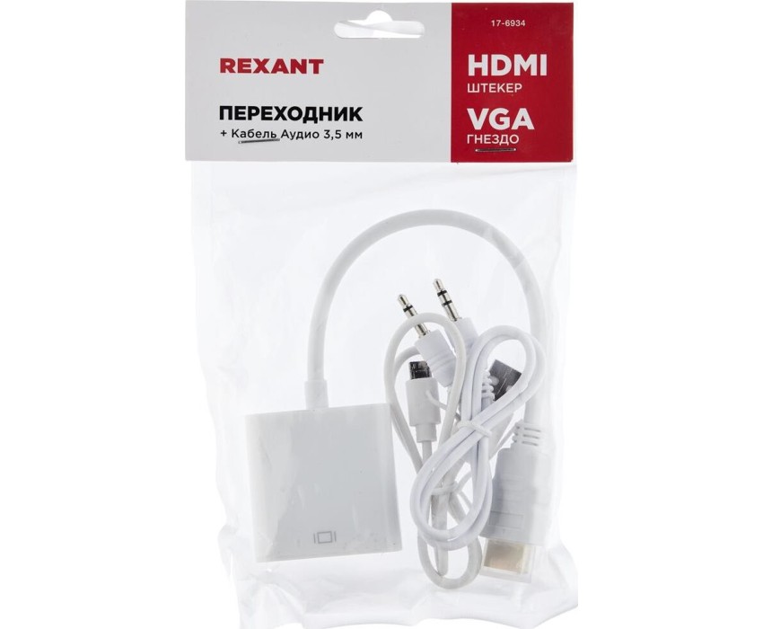 Переходник REXANT (17-6934) Переходник штекер HDMI - гнездо VGA провод + 3.5мм с питанием белый