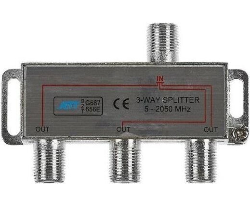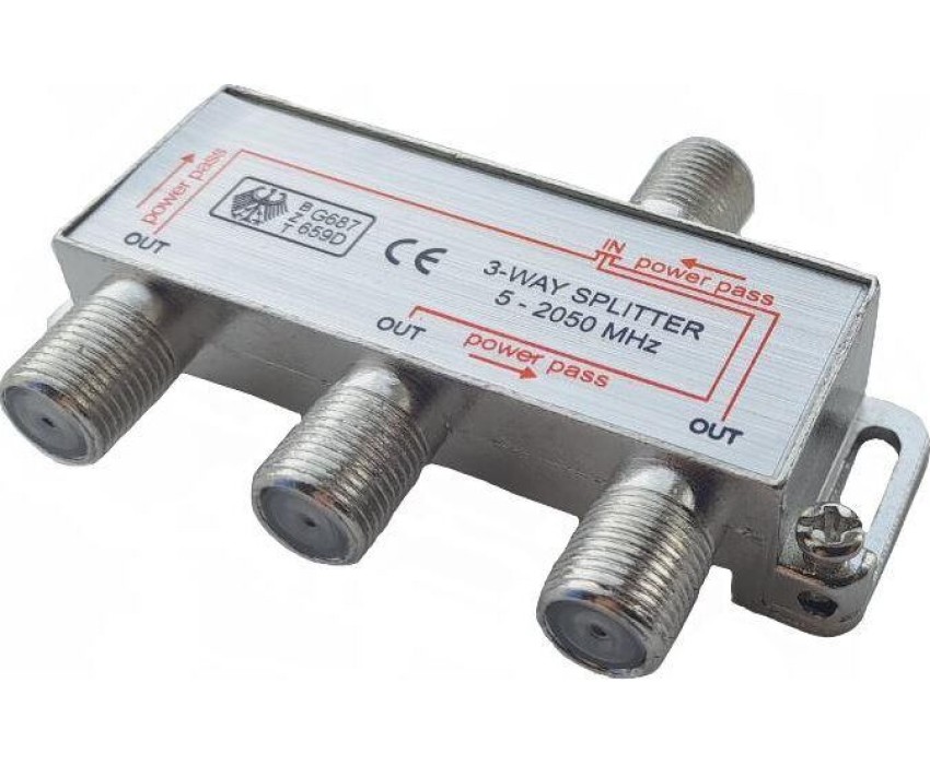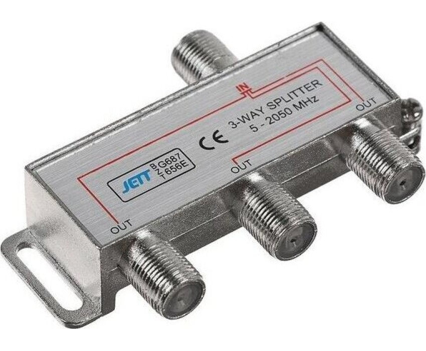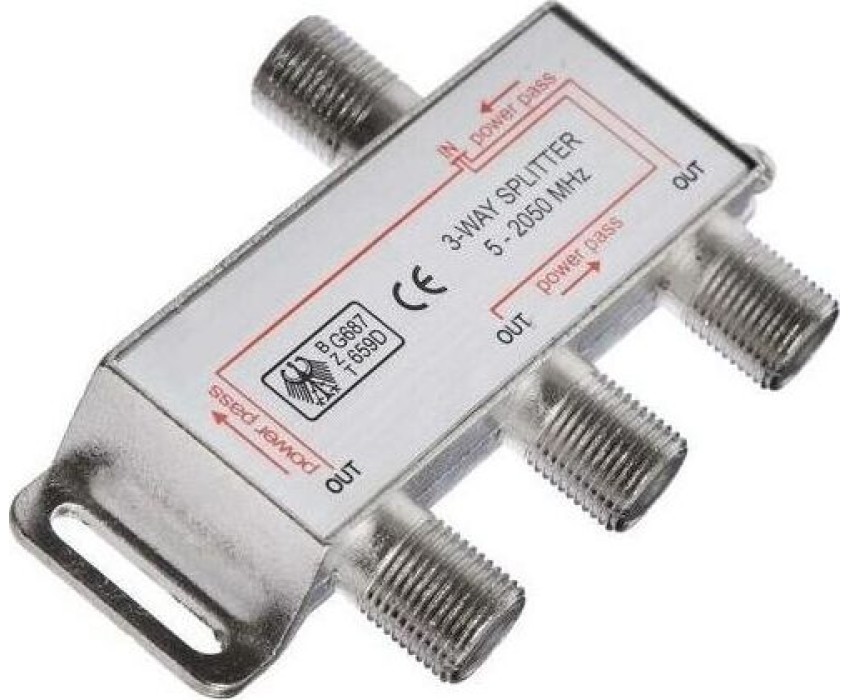 Используется для разделения телевизионного сигнала на несколько частей. Тип:сплиттер (разветвитель). Количество выходов:3шт; Частота сигнала:5-2050MHz; Материал:металл.