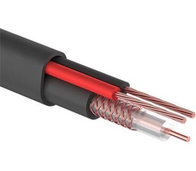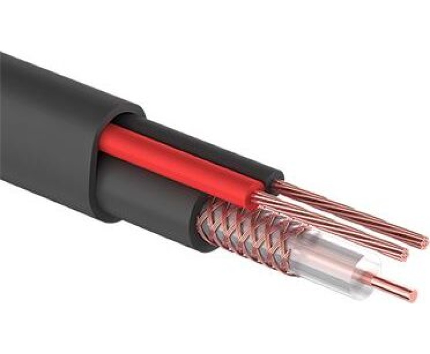 Коаксиальный кабель состоит из медного монолитного проводника, диэлектрика из полиэтилена PE, внешнего проводника из омедненных жил в виде оплетки и оболочки из светостабилизированного полиэтилена PE, аналог кабеля (РК-75-2-11). Жила питания (омедненная) многожильная, сечением 0,5 мм? в изоляции из ПВХ. Общая оболочка из светостабилизированного полиэтилена PE и диаметром кабеля 7 мм.