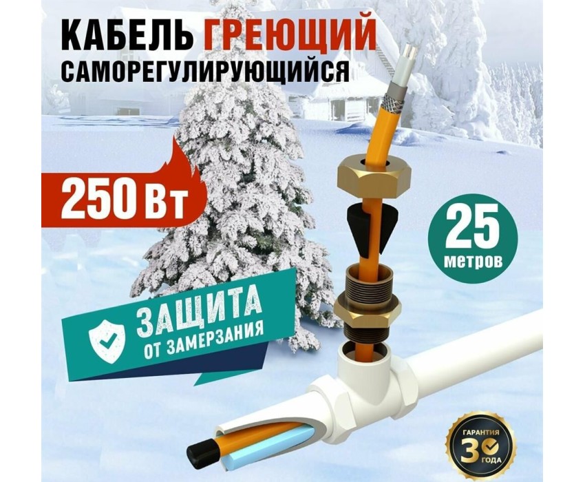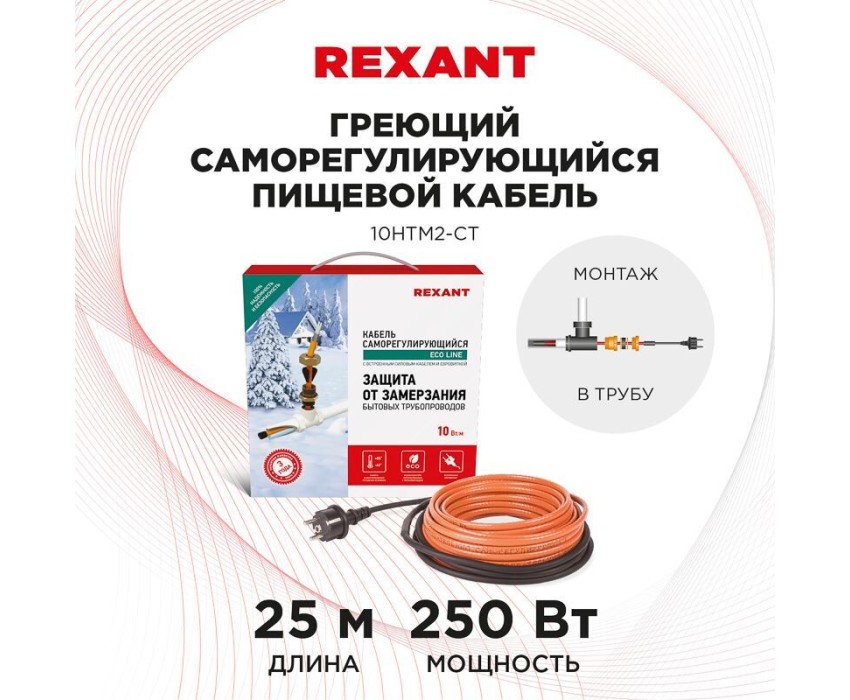 REXANT Кабель греющий саморегулирующийся пищевой модель SRP 10HTM2-CT, готовый комплект в трубу, 25м/250Вт