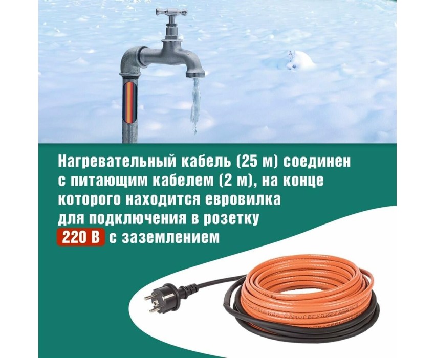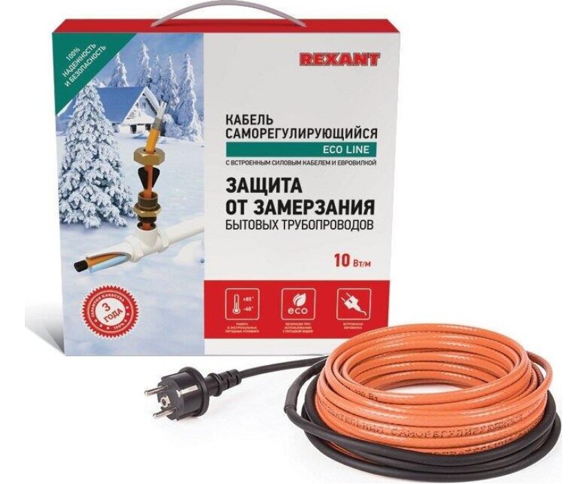 Комплект саморегулирующегося кабеля HTM-CT REXANT предназначен для защиты от замерзания бытовых трубопроводов, счетчиков воды, вентилей и т.п.. Нагревательный кабель соединен с питающим кабелем, на конце которого находится евровилка для подключения в розетку с заземлением. Нагревательный кабель является саморегулирующимся и в нормальных условиях его температура не превышает 60 °C. Комплекты подходят для использования как в помещениях, так и на улице. Кабель может быть смонтирован на поверхности как металлической, так и пластиковой трубы, под теплоизоляцией, а также установлен внутрь трубы с водой. Кабель может пересекаться сам с собой.
