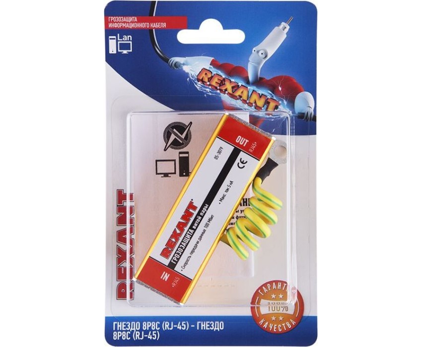 REXANT Грозозащита информационного кабеля, гнездо 8Р8С (RJ-45) - гнездо 8Р8С (RJ-45) (1шт/уп)