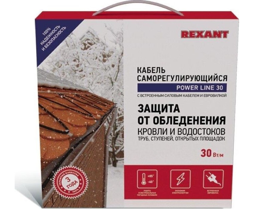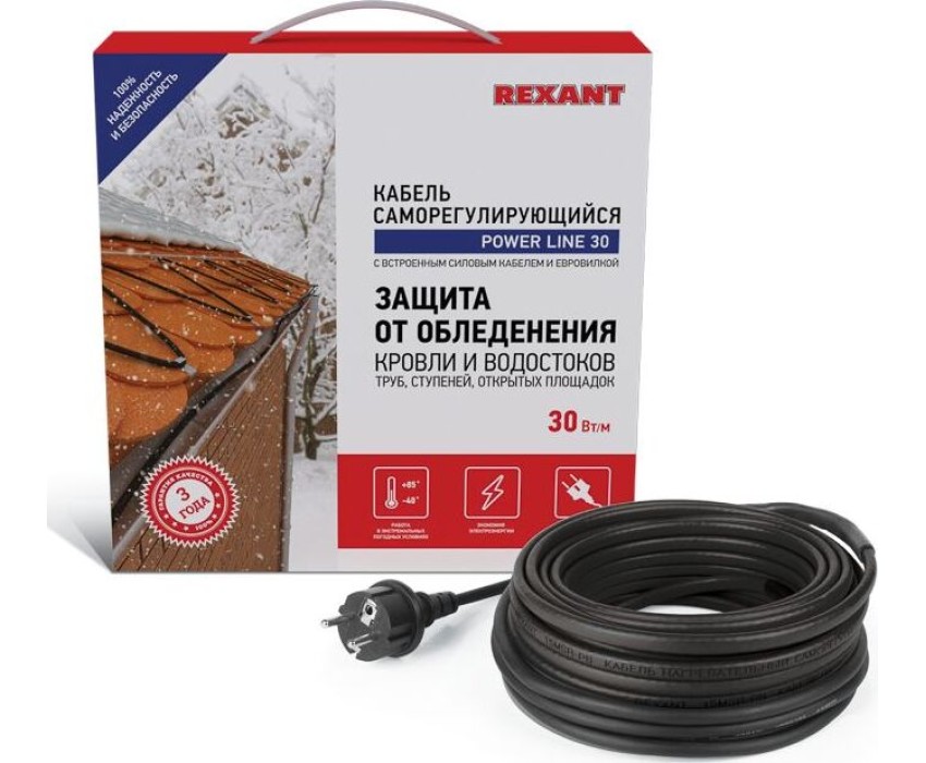 Комплекты саморегулирующегося кабеля Extra Line MSR-PB REXANT предназначены для защиты от замерзания бытовых трубопроводов, счетчиков воды, вентилей, а также могут использоваться для обогрева кровли и водостоков. Нагревательный кабель соединен с питающим кабелем, на конце которого находится евровилка для подключения в розетку с заземлением. Нагревательный кабель является саморегулирующимся и в нормальных условиях его температура не превышает 60 °C. Комплекты подходят для использования как в помещениях, так и на улице. Кабель может быть смонтирован на поверхности как металлической, так и пластиковой трубы, под теплоизоляцией. Кабель может пересекаться сам с собой.