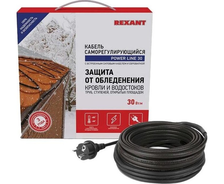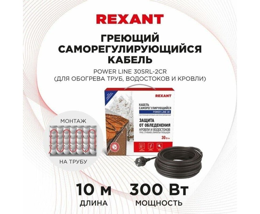 REXANT Кабель греющий саморегулирующийся модель SRL POWER Line 30SRL-2CR, 10м/300Вт